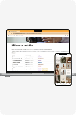 No Notion, você usa a versão digital e editável, com subpáginas integradas, calendários, fórmulas e automações que facilitam o acompanhamento do planejamento no dia a dia.